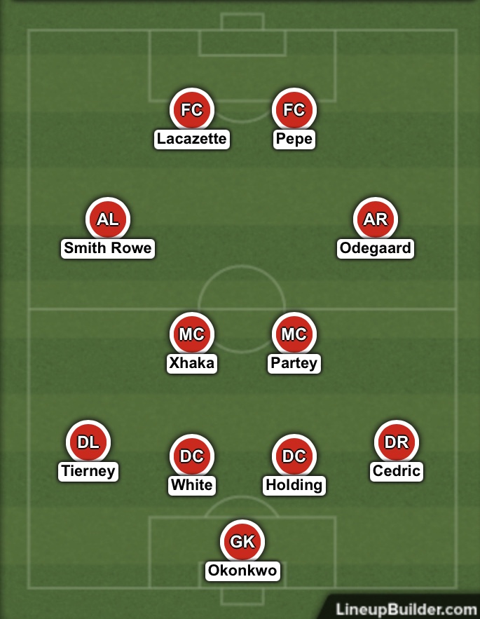 the 11 players which it is suggested should comprise Arsenal’s starting 11, for their Premier League clash vs Brentford would appear to be as follows: