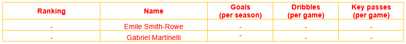 As for the club’s contracted attacking midfielders, it’s unfair to judge Smith-Rowe, Patino, Cirijan, Flores and Oulad M’Hand as all five players have insufficient professional experience in any of the considered leagues, to appropriately assess their performances.