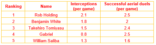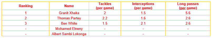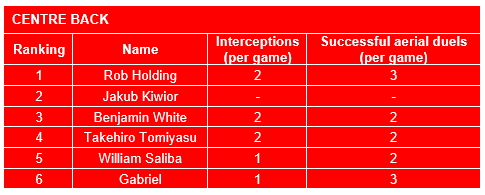 Centre Backs (KPIs: 2+ Interceptions, 3+ Successful Aerial Duels, 3+ Long Passes)