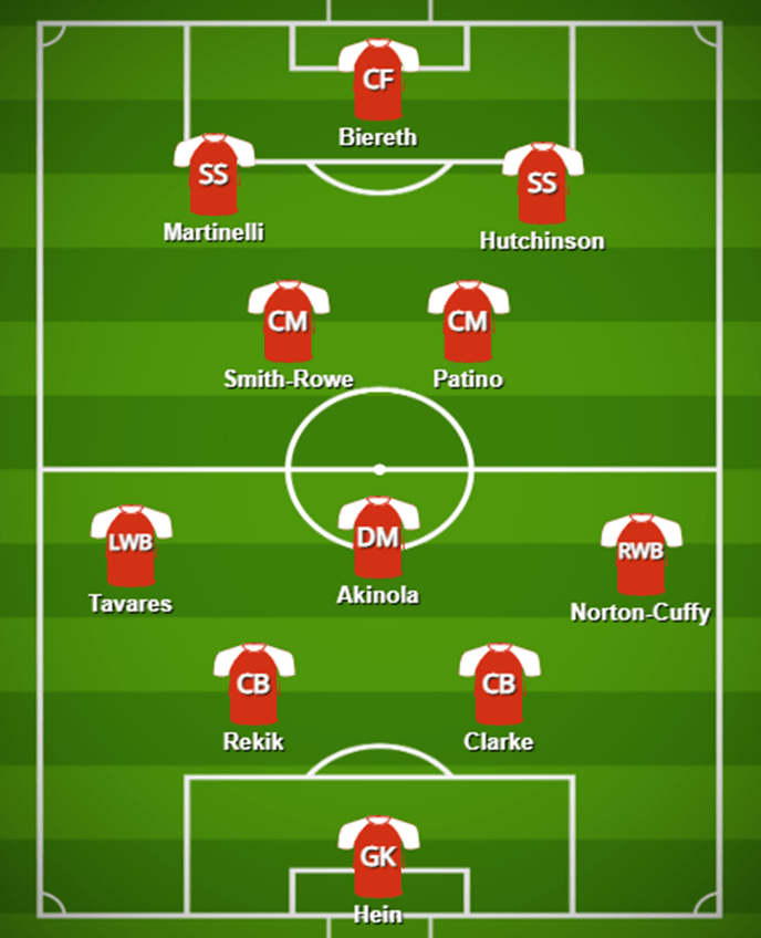 the 11 players which should comprise Arsenal’s starting 11, for their Europa League clash vs Bodoe/Glimt would appear to be as follows: