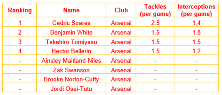 In terms of the right fullback position, it’s unfair to judge Maitland-Niles, Swanson, Norton-Cuffy or Osei-Tutu’s suitability, as all four of those players have insufficient professional experience in the reviewed leagues to appropriately assess their performances.