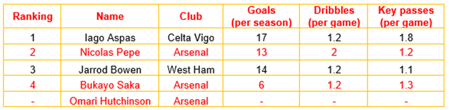 In light of Saka’s deficiencies, Pepe’s KPIs, and the need for one of Arsenal’s right forwards to be under 21 years of age, it would be logical for Arsenal to sell Saka, recruit Iago Aspas from Celta Vigo and retain Pepe and Hutchinson as the club’s three right forward options.