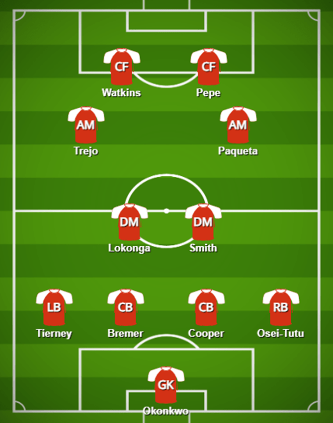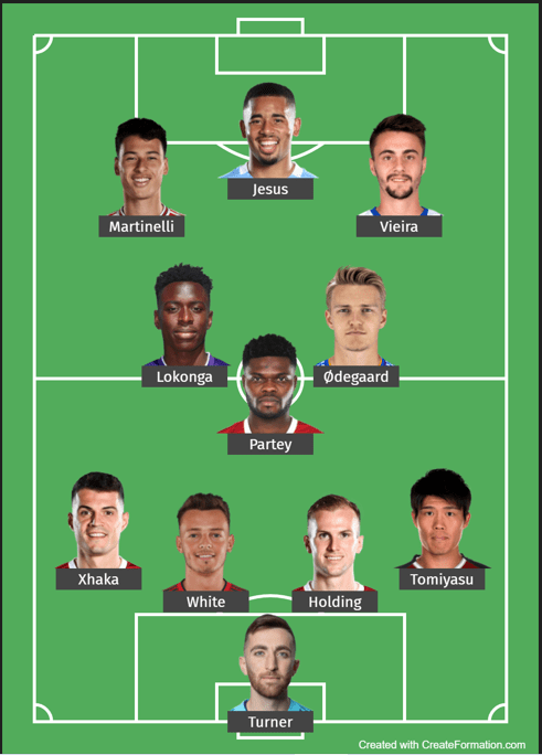 the 11 players which should comprise Arsenal’s starting 11, for their Premier League clash vs Nottingham Forrest would appear to be as follows: