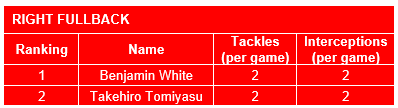Right Fullback (KPIs: 2+ Tackles, 2+ Interceptions)
