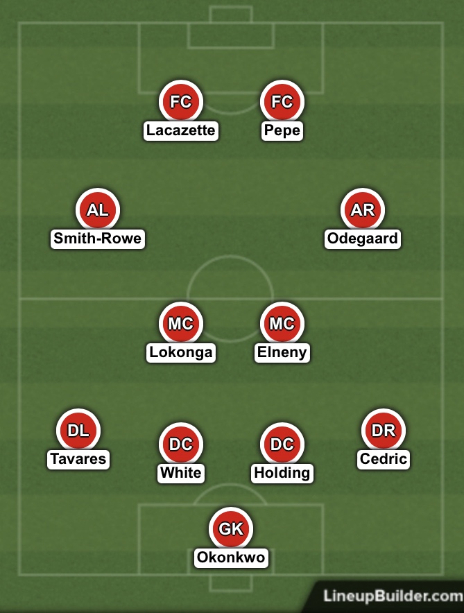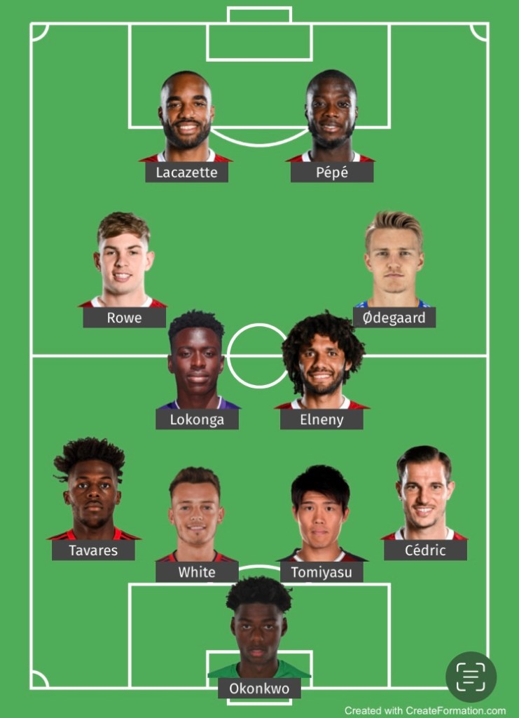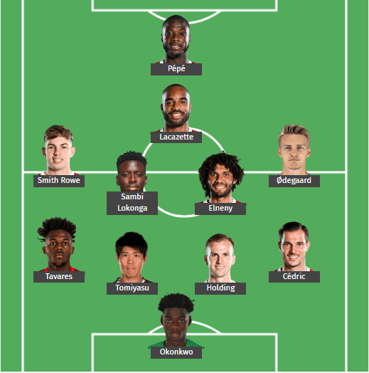 the 11 players which should comprise Arsenal’s starting 11, for their Premier League clash vs Southampton would appear to be as follows: