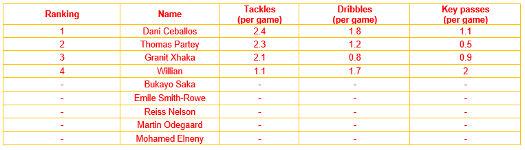 In terms of the club’s contracted central midfield options, it’s unfair to judge the suitability of Smith-Rowe, Elneny, Willock, as none of those players have had sufficient professional experience in any of the examined leagues, to appropriately assess their performances.