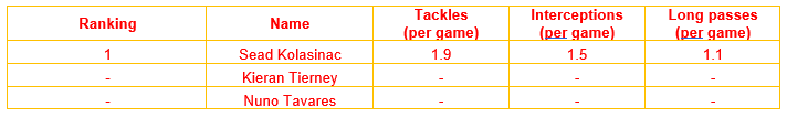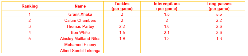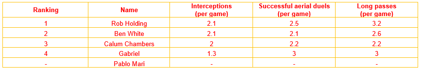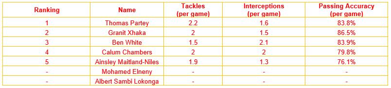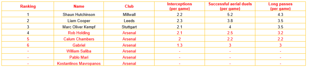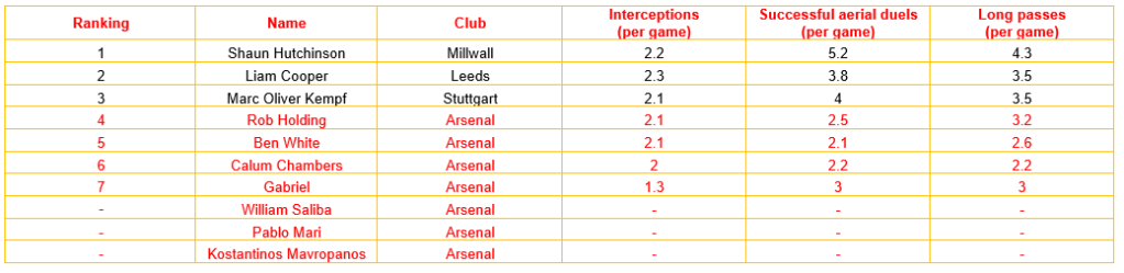 While it’s unfair to judge, Mari, Mavropanos or Saliba, as all three players have insufficient professional experience in any of the considered leagues, to appropriately assess their performances, as for the club’s other contracted central defender options: