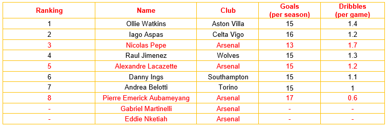 In light of the comparative dribbling deficiencies of Aubameyang, and Pepe’s allocation as an attacking midfield option, it would be logical for Arsenal to sell Aubameyang, and retain Lacazette to serve as one of Arsenal’s senior centre forwards.