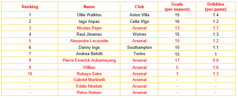 In terms of the club’s contracted right wing options, it’s unfair to judge the suitability of Martinelli or Nelson, as neither player has had sufficient professional experience in any of the examined leagues, to appropriately assess their performances.