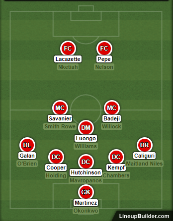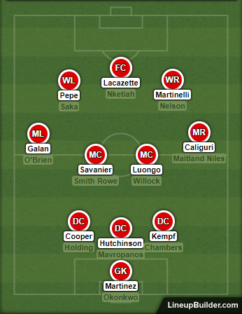 the 11 players which it is suggested should comprise Arsenal’s starting 11, for their Round 3 Premier League clash vs Man City would appear to be as follows: